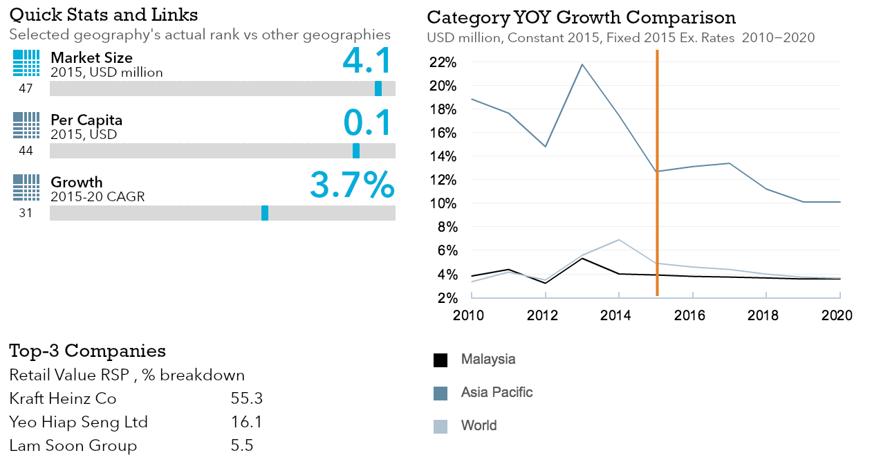 • Malaysia ranks 16 globally in terms of market size, with a value of US$964.5 mn in 2023, being the fourth largest consumer market in Asia Pacific. Looking ahead, the market is expected to grow at a constant CAGR of 3.8% through the forecast period, similar to the Asia Pacific average.