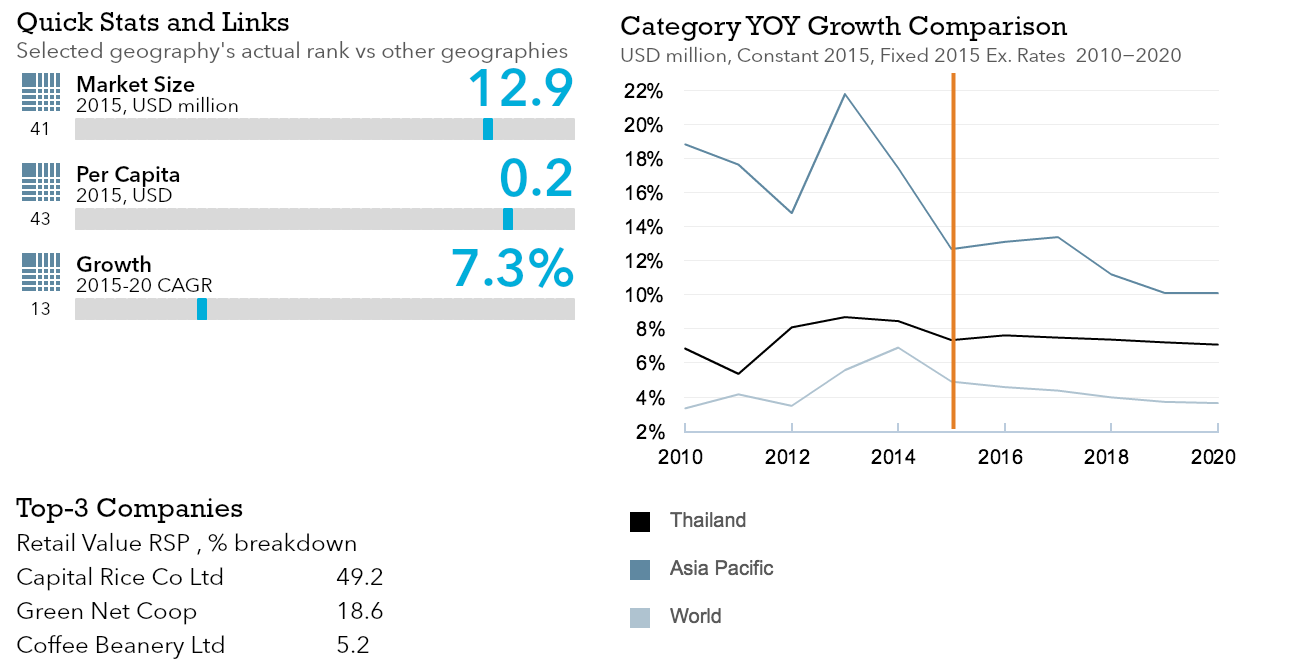 • The Organic Packaged Food and Beverages category in Thailand registered a value decline of -14.0% in 2023 in current prices to record a market size of US$250.8 million.