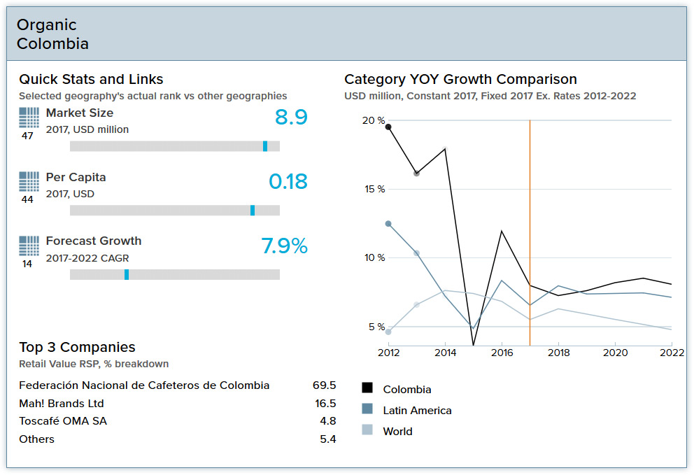 • Depending on the country, such products are called "organic," "biological," or "ecological": For organic products to be included under Euromonitor definitions, the organic aspect needs to form part of positioning/marketing of the product. This is an aggregation of organic baby food, bakery, confectionery, dairy, ice cream, oils and fats, ready meals, rice, sauces, dressings and condiments, snack bars, soups, spreads, sweet and savory snacks, and other organic food.