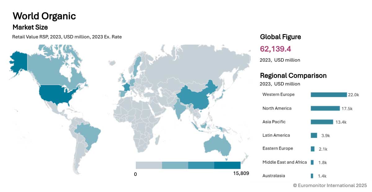 • Organic products in New Zealand represent roughly 0.6% of global demand and about 24.0% of the market in the Australasia region.
