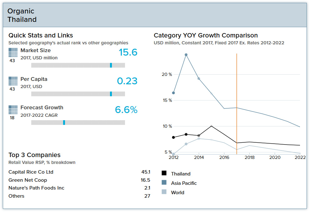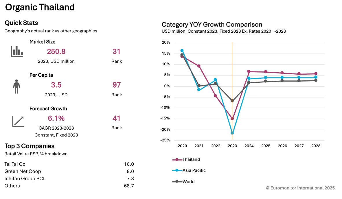 • Thailand ranks 31st globally in terms of market size, with a value of US$250.8 mn in 2023, holding the 8th place in the organic market in Asia Pacific.